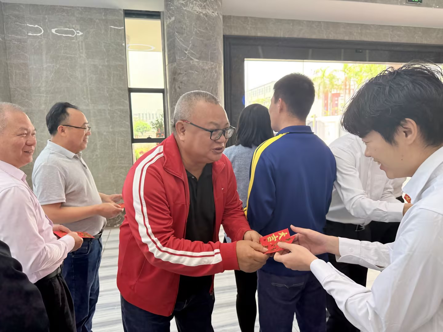 致辞结束后,激动人心的开门红包大派送环节将现场气氛推向高潮。从管理层到一线员工,人人有份,个个开心。这份沉甸甸的“开门红”,不仅是福利,更是公司对大家新一年业绩长虹的美好期许。